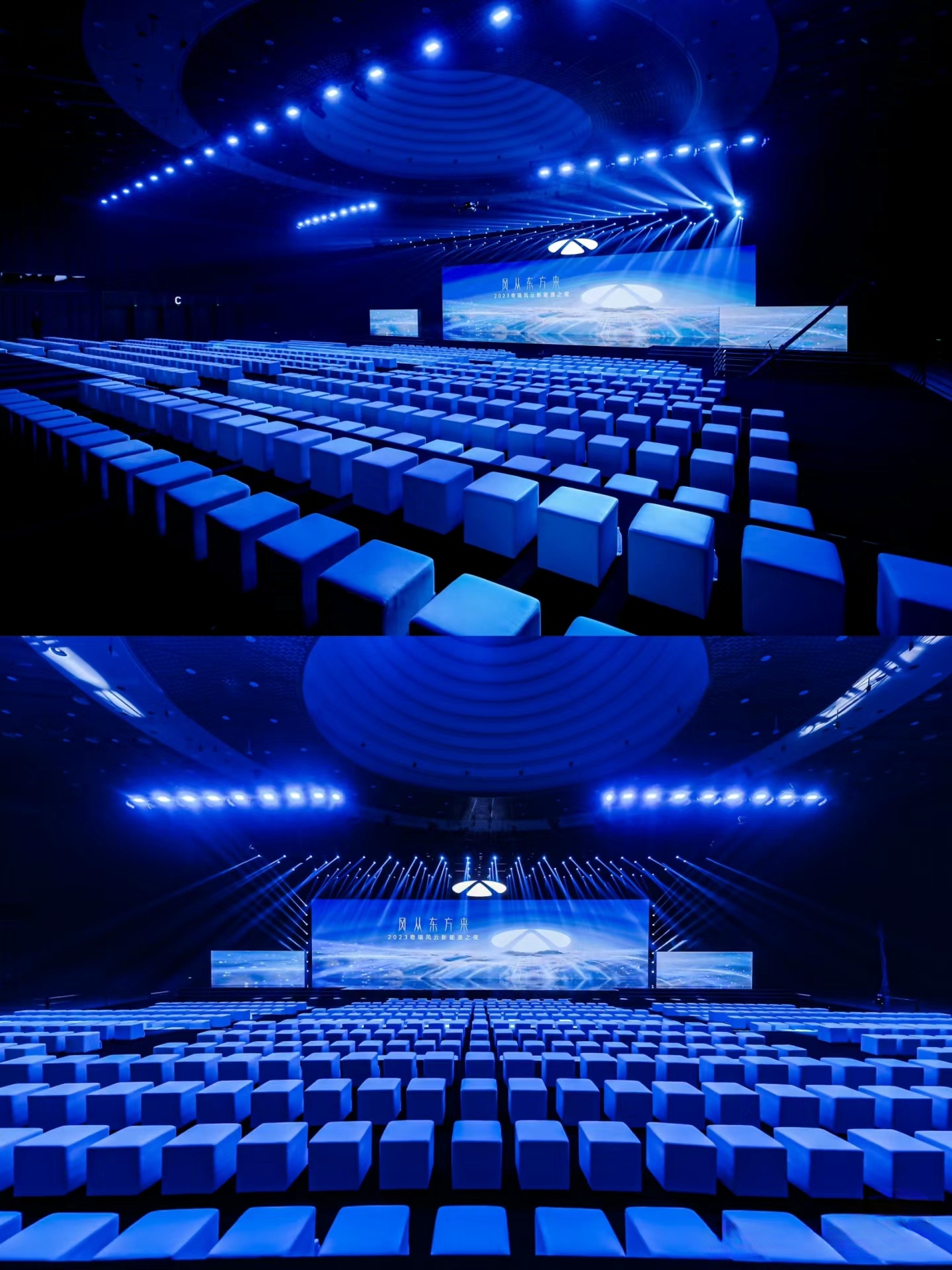 綜上所述,“風從東方來——奇瑞風云新能源之夜”活動現場通過整體氛圍營造、展區設計、色彩與燈光運用、互動體驗區以及數字與信息呈現等多個方面的精心策劃與布置,為觀眾帶來了一場視覺與感官的盛宴。