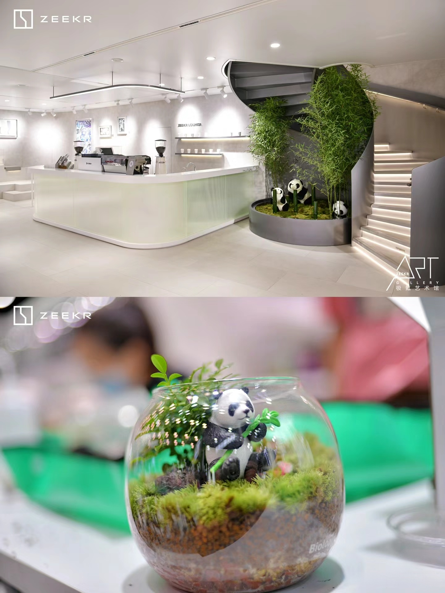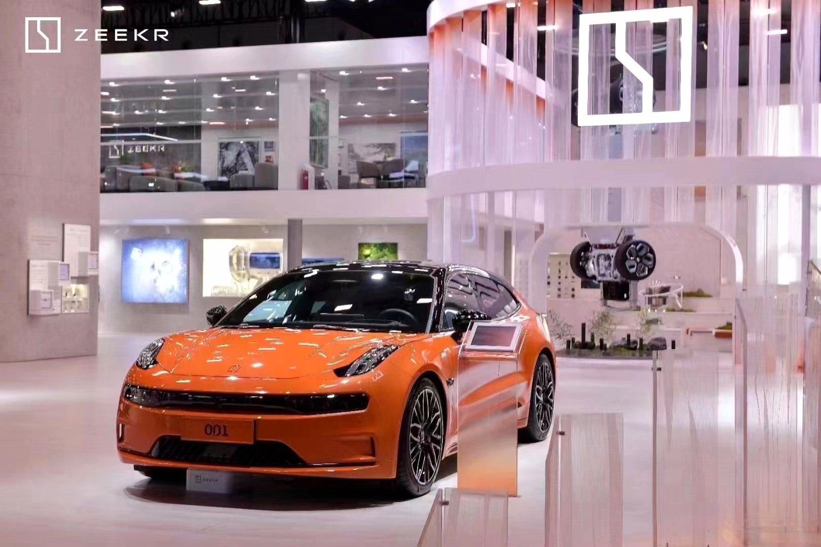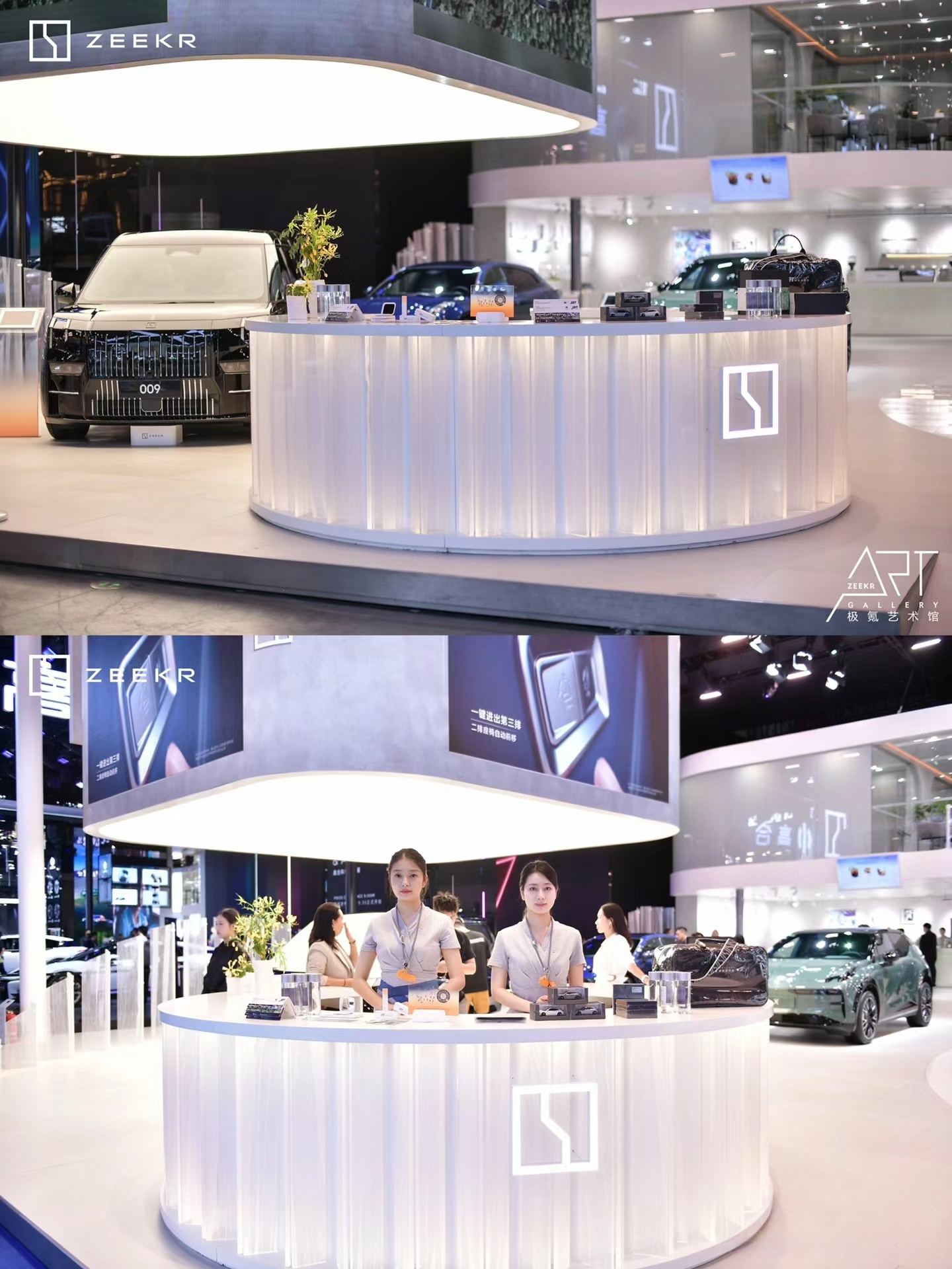 科技與藝術的完美融合:極氪展臺將科技與藝術元素巧妙結合,創造出一個既充滿科技感又不失藝術氛圍的展示空間。這種設計不僅展示了極氪品牌的前沿科技實力,還通過藝術手段增強了品牌與用戶的互動和共鳴。
