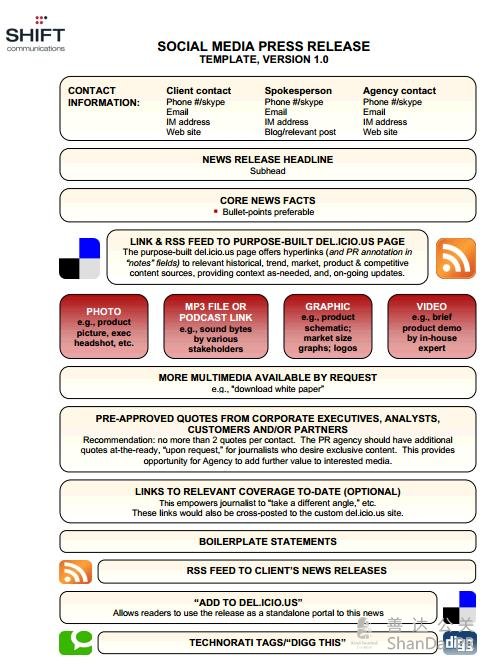 社交媒體新聞稿 (Social Media News Release, SMNR) 是由Shift Communications 的Todd Defren最先提出來(lái)的。其實(shí)更確切地描述應(yīng)是“社交媒體友好的新聞稿”。這種新聞稿貌似復(fù)雜,包含大量多媒體內(nèi)容以及相關(guān)資訊鏈接,如公司其他新聞稿和專家引述等。這種對(duì)格式的強(qiáng)調(diào)使得許多人望而卻步,這種現(xiàn)象時(shí)至今日依然存在。