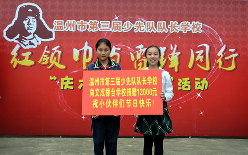5月27日,溫州市第三屆少先隊隊長學校130名學員到文成縣樟臺圣雄希望小學開展“紅領巾與雷鋒同行”系列活動之“慶六一•送溫暖”手拉手結對活動。