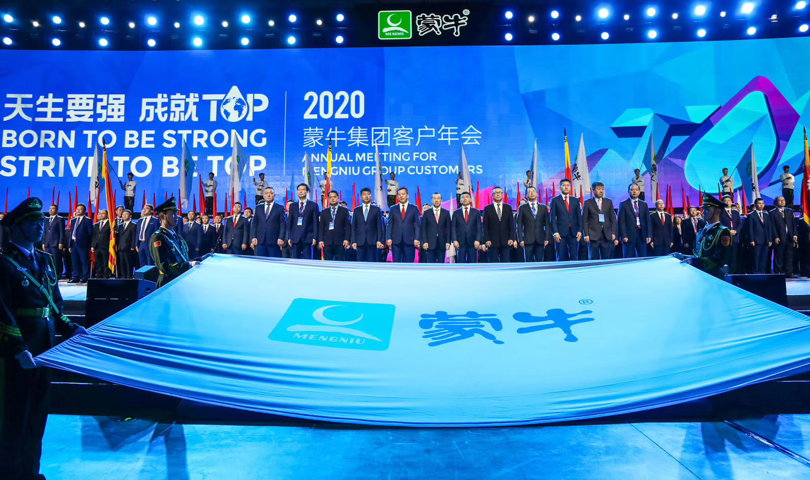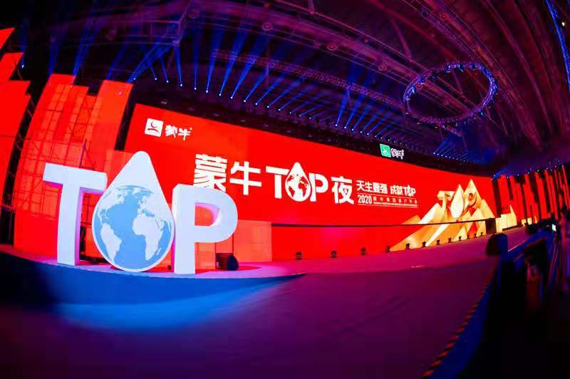 蒙牛TOP夜中,以《沖上云霄》為開場節目,民族舞曲、悠揚舞蹈、澎湃舞曲點燃了在場氣氛,更有神曲串燒展現企業各區負責人的活力風采。