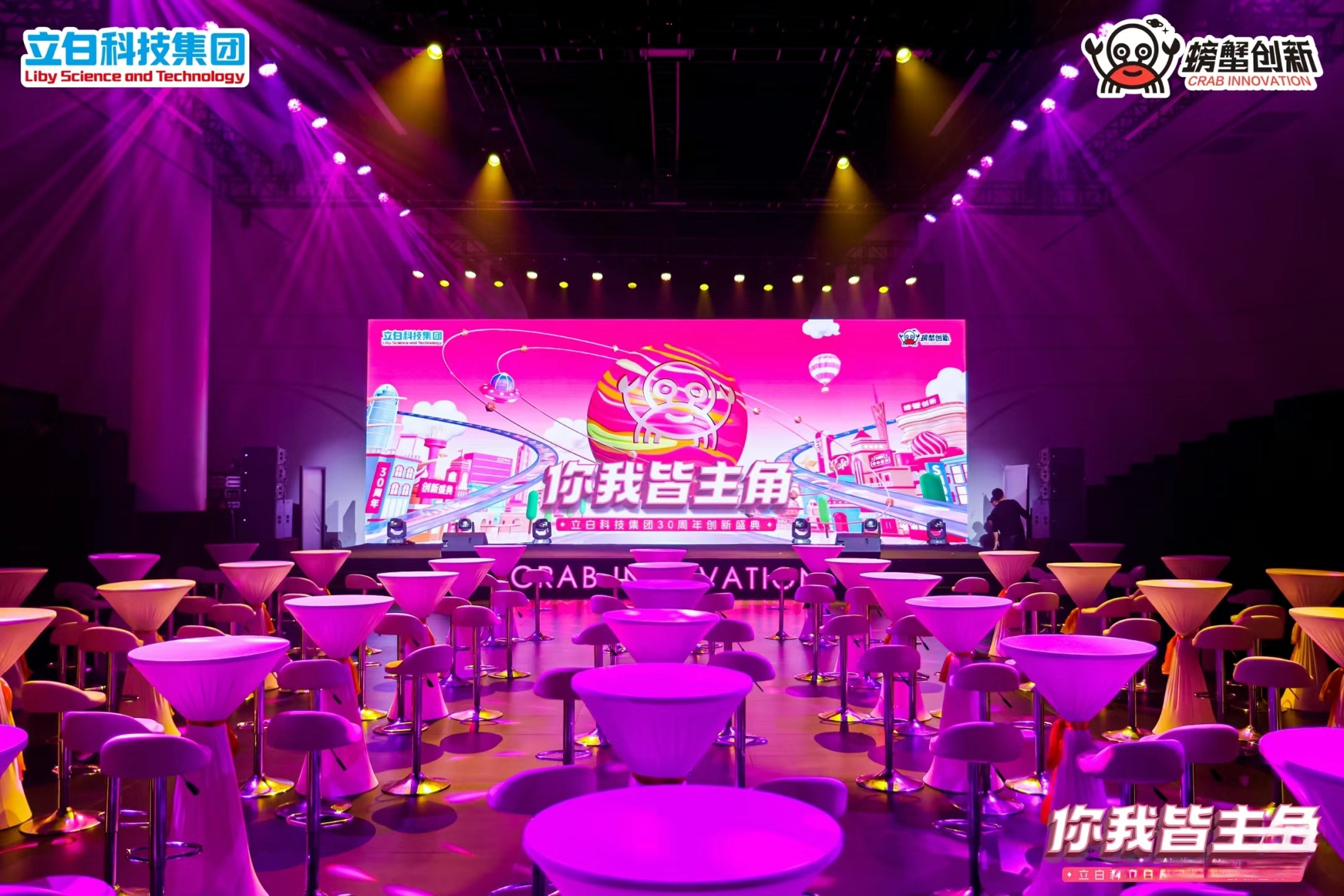 舞臺設計:設計現代化的舞臺背景,以立白科技集團的標志和30周年慶典為主題,利用高清LED顯示屏展示公司歷程和創新成果。