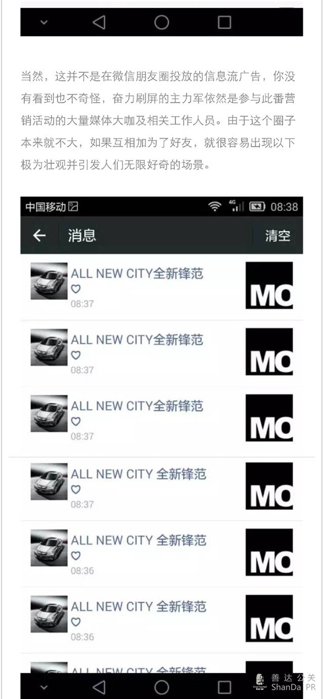 在大街上玩快閃,作為營銷手段來說,這一招在消費者眼中早就不新鮮了,要顯得更特別,最簡單直接的方法或許是將它搬到另一個舞臺上,比如說微信朋友圈。這里說的是廣汽本田不久前為全新鋒范預售發布而制造的一波快(shua)閃(ping)活動。